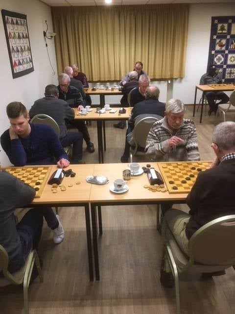 Weer een geweldige opkomst, liefst 19 leden namen deel aan dit jaarlijks festijn, huisdammer Stanford Yeboah was ook aanwezig op uitnodiging. Er staat namelijk veel op het spel eieren winnen........Via het Keizer system werden de tegenstanders aan elkaar gekoppeld en er warden leuke en verrassende resultaten geboekt, Marco te Braak deed het uitstekend en scharrelde zowaar 7 uit 7 punten bij elkaar en in de eindscore dan ook als zevende.