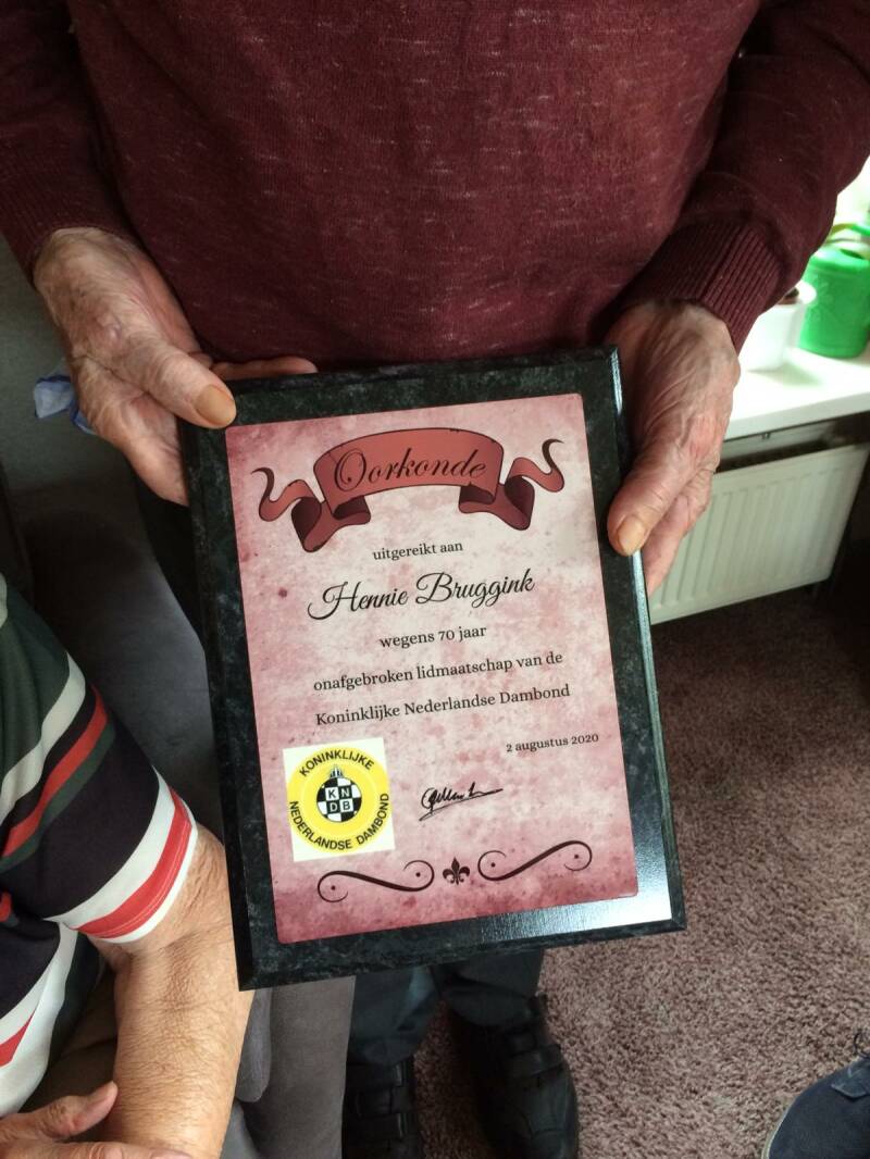 Op 1 maart is Hennie Bruggink 70 jaar lid van de Koninklijke Nederlandse Dam Bond. Eerst als lid van VADAC, nu de fusie als lid van Damcombinatie DSV